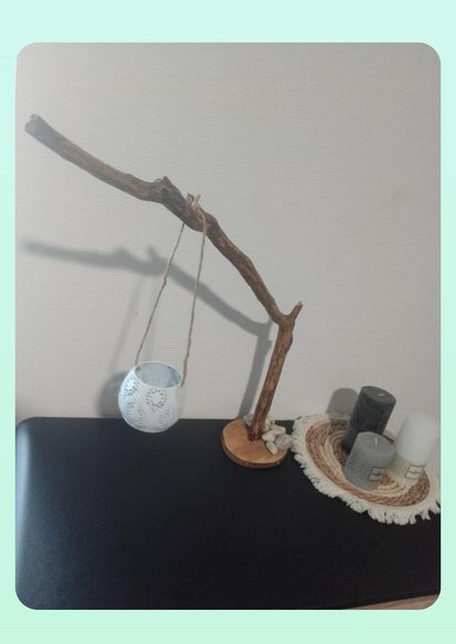 Centre de table en bois recyclé avec support bougie incluse. Ce centre de table est fabriqué artisanalement à partir de bois de recyclage ramassé dans la nature, et soigneusement transformé . Cet article peut provenir d'arbre donc ne peut être reproduit à l'identique car ils possèdent une forme unique. Frais de port inclus.